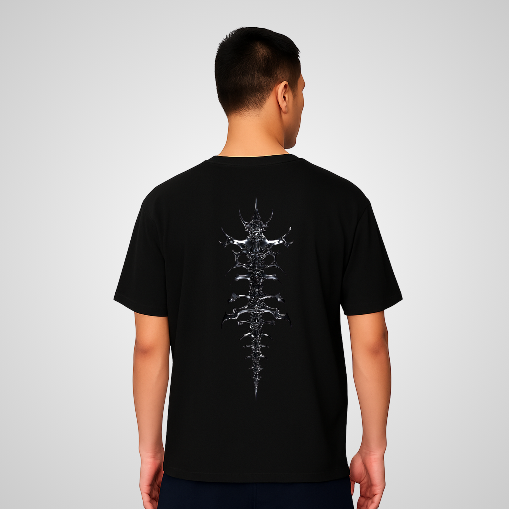 Stand tall with our Chrome Spine tee — a sleek symbol of inner strength and unbreakable will. For those who never bend.