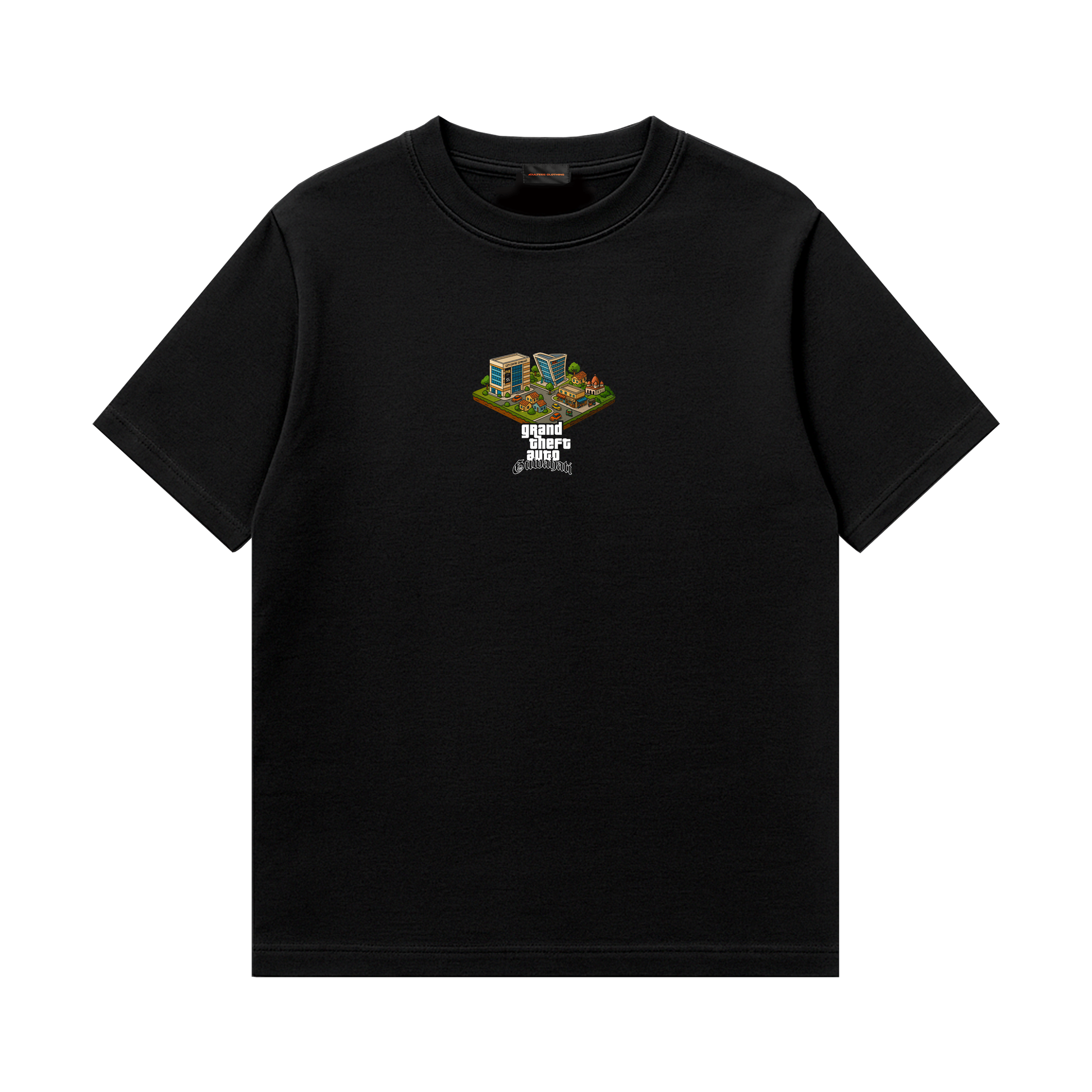 GTA Guwahati fuses retro gaming with the raw spirit of Assam. From Pan Bazaar to Beltola, this pixel-art tee captures the city’s chaos, charm, and culture. Street food, alleys, late-night adda—every thread echoes Guwahati. For those who walk the city like a playground and wear their roots with pride.