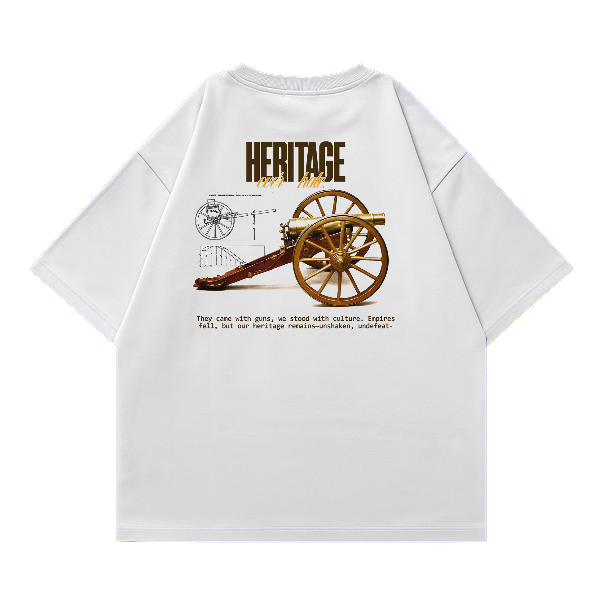 Stand strong with our "Heritage Over Hate" tee, featuring the Gatling Gun — a powerful symbol of resistance against oppression. A tribute to history and the courage to fight.