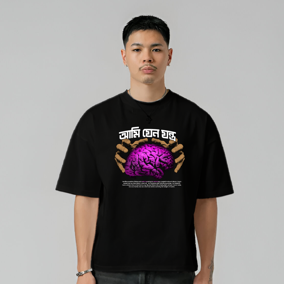 Inspired by Zubeen Garg’s classic song, Jontro, this design mirrors the modern struggle of people turning into machines losing emotions to routine. It reflects the tension between humanity and mechanization in today’s fast-paced life.