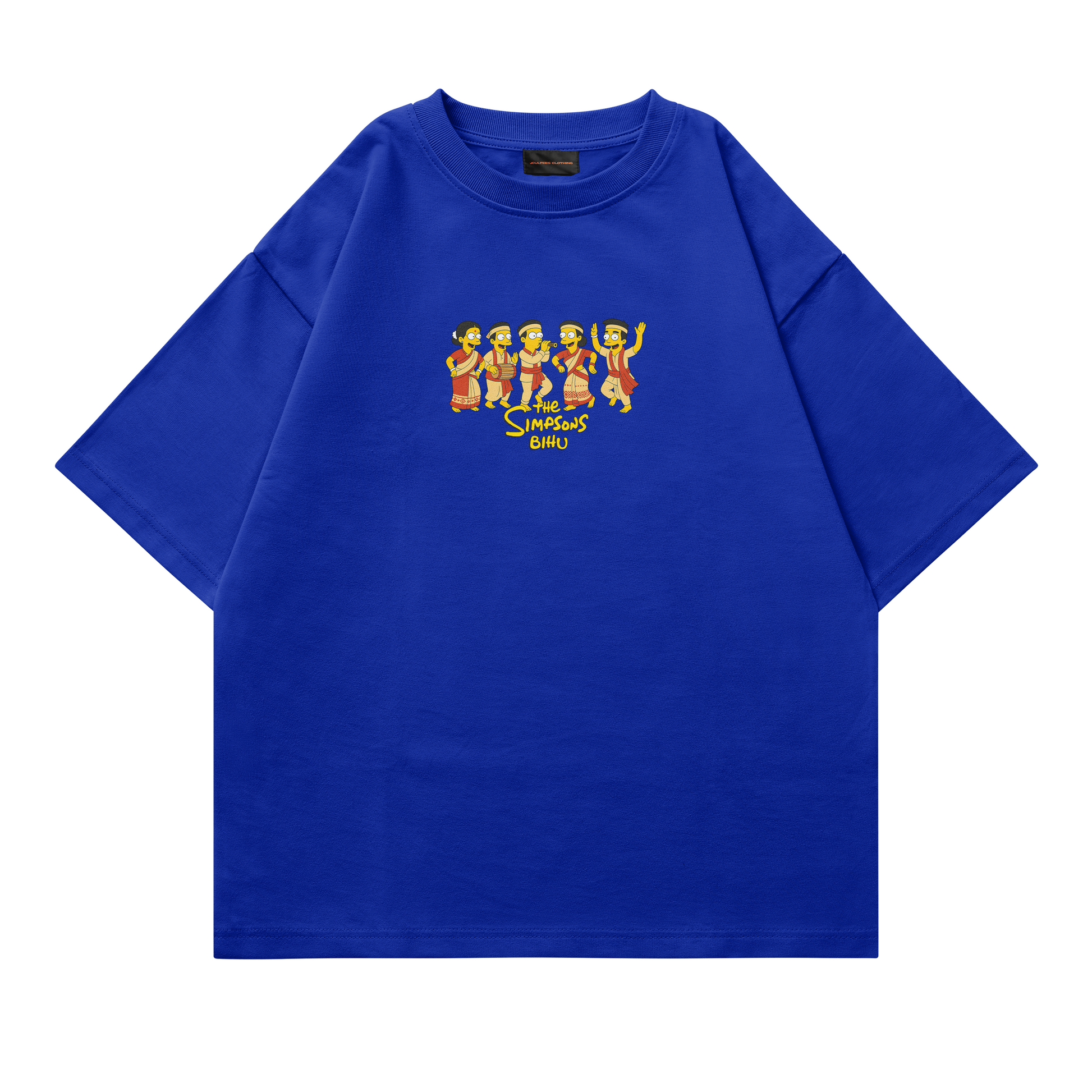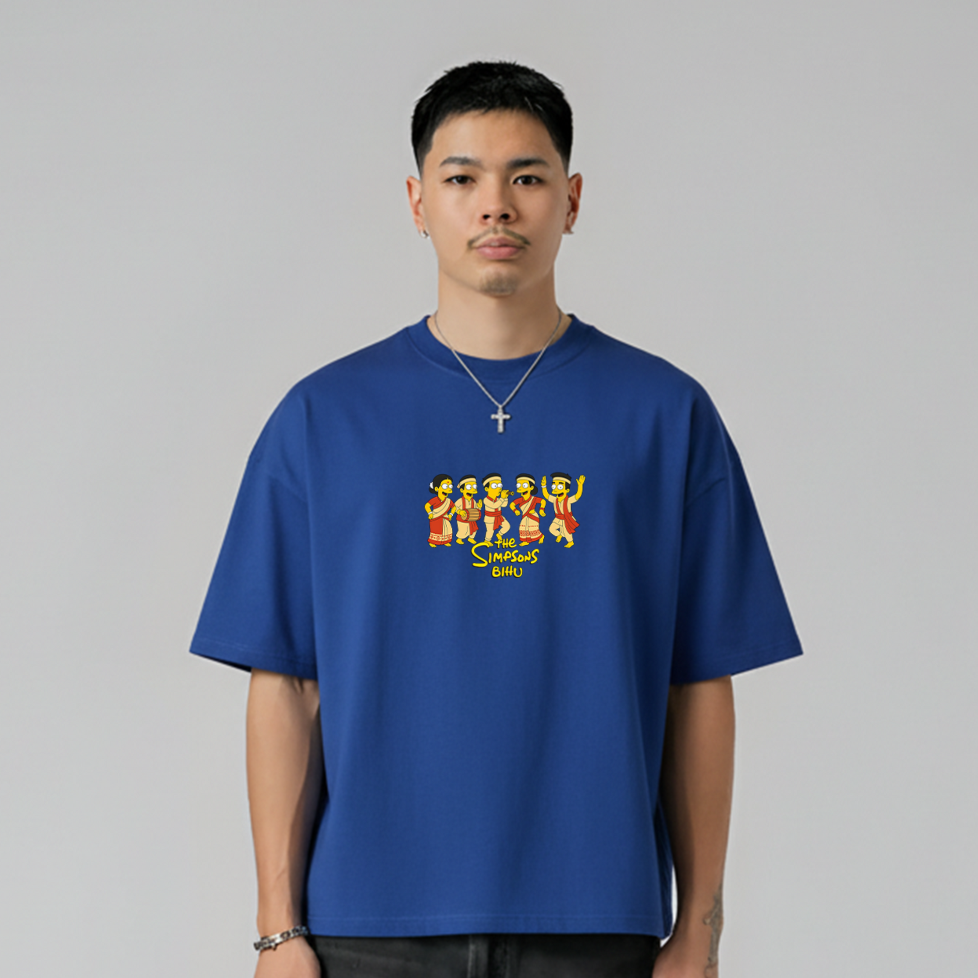 A fun cultural crossover - The Simpsons reimagined in the spirit of Assam’s Bihu festival. Joyful, humorous, and colorful, this design connects global pop culture with local tradition in a lighthearted, relatable way.